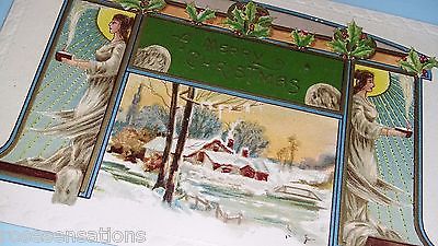 VINTAGE old holiday CHRISTMAS Postcard GUARDIAN ANGELS Sun WINTER SCENE snow
