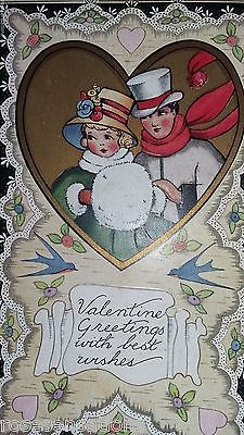 Art Deco WHITNEY OLD VALENTINE GREETING postcard VICTORIAN COUPLE blue birds