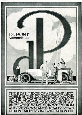 1920 du PONT Big Pg CAR AD. On the BEACH. John SHERIDAN Art. Wilmington, Del