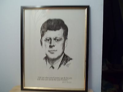 Title (ebay affiliate link): VINTAGE JOHN F. KENNEDY PORTRAIT HAND PRINT BY A. GRUERIO AUG. 63' FRAMED