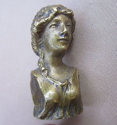 Antique Miniature Bronze Bust of a Maiden in Roman Costume