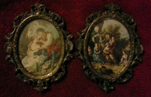 Lot of 2 Ornate Vintage Brass Frames with Picture-- Made in Italy