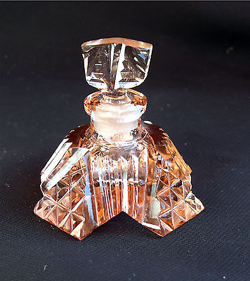 Petite Marked Pink Czechoslovakian Cut Glass Perfume Bottle