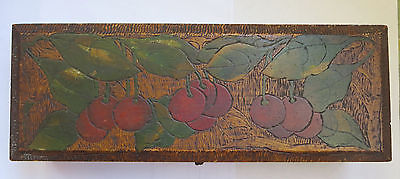 Antique Flemish Pyrography Burnt Wood cherry CHERRIES Box Arts and Crafts era