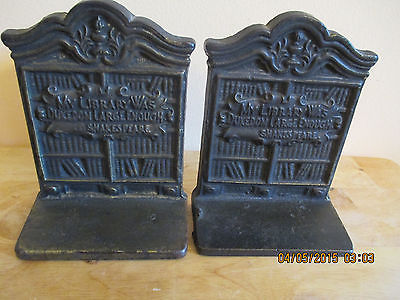 Cast Iron Antique Shakespeare Library Bookends 'My Library Dukedom Large Enough'