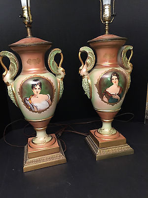 Title (ebay affiliate link): French 19th/20th C Pair of Sevres Porcelain Painted Portrait Urns Vases LAMPS