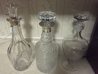Title (ebay affiliate link): LOT of 3 CUT GLASS ANTIQUE CRYSTAL DECANTERS - STERLING Silver Collar , HEISEY?