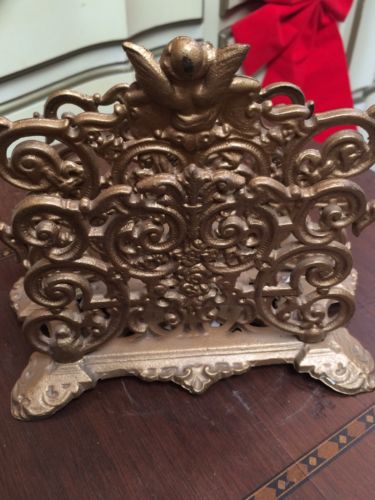 Vintage Antique Letter Holder Desk Metal Brass Organizer Gold Gilt Angels u3