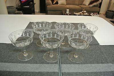 SET of 6 SUPERB VINTAGE Hawkes CRYSTAL ETCHED CHAMPAGNE SHERBET Glasses Stems EX