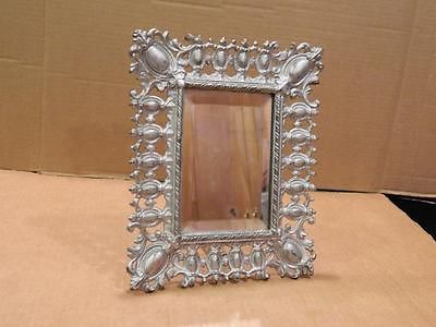 Silver Painted Brass Mirror Picture Frame Easel Back Antique