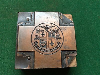 ANTIQUE VTG AMERICAN HOSPITAL ASSOCIATION COAT OF ARMS PRINTING BLOCK - N.R.