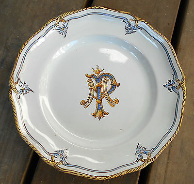 Handsome Antique FAIENCE PLATE "MP" HP Monogram French Spanish Vintage Pottery