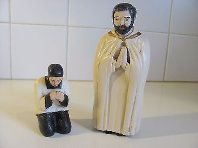 Vintage Folk Art Hand Carved and Hand Painted Wooden Priest and Altar Boy