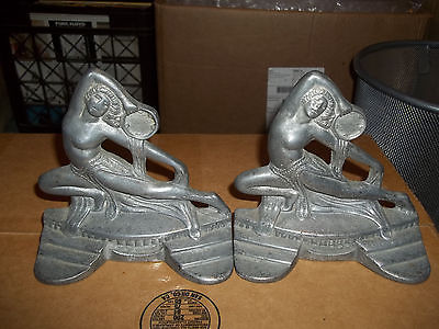 VINTAGE ART DECO CAST METAL GREEK GODDESS LADY BOOKENDS