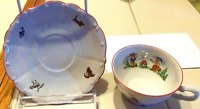 Vintage Cup & Saucer--Gnomes/HP--Bareuther/Bavaria