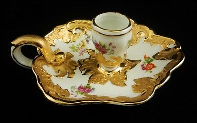 Title (ebay affiliate link): Antique GERMAN / FRENCH 19thC Gilt PORCELAIN CHAMBER CANDLESTICK Carrier LIMOGES