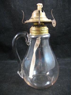 Unusual Antique Teardrop Shaped Oil Lamp Applied Handle 7 1/2" tall Working