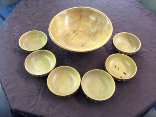 Lot Of 7 Munising Carved Thumbprint Wooden Bowls