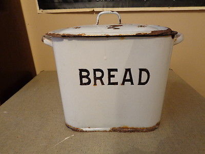 Old antique Embossed White Enamel Wear Bread Box