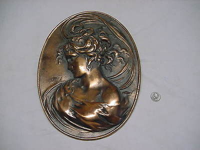 Large Art Nouveau Cast Metal Relief Oval Plaque of Women