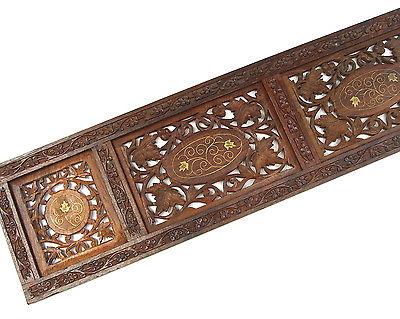 Title (ebay affiliate link): Carved Wood Panel from India, Brass Inlay, Flowers Leaves, Boho Rustic Decor