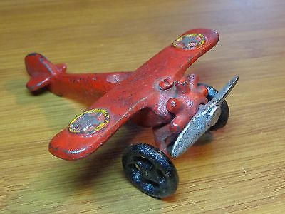 Hubley Arcade Like Cast Iron WW2 Red Radial Engine High Wing Taildragger Plane