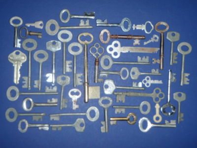 Antique Vintage old skeleton key lot furniture lock box