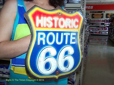 Route 66 Neon Looking Embossed 3D Metal Street Sign Mother Road T Bird RT 66 USA