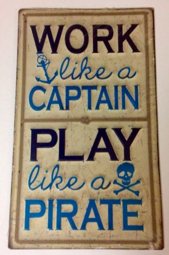Title (ebay affiliate link): WORK LIKE A CAPTAIN PLAY LIKE A PIRATE METAL SIGN MAN CAVE SEA OCEAN SURF BEACH