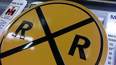 Title (ebay affiliate link): Embossed round yellow Railroad crossing sign man cave shop