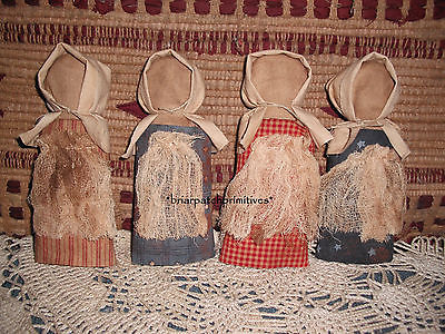 4 Primitive Farmhouse Americana Prairie Doll Ornies Bowl FillersTucks Ornaments