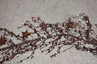 Primitive Country Mix Pip Berry Garland W/Rusty Tin Stars Home Decor