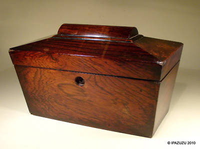VICTORIAN ROSEWOOD SARCOPHAGUS TEA CADDY