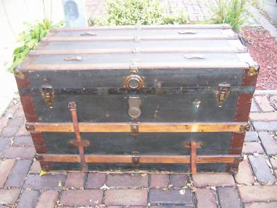 ANTIQUE VINTAGE WOODEN OVERLAND TRUNK CHEST