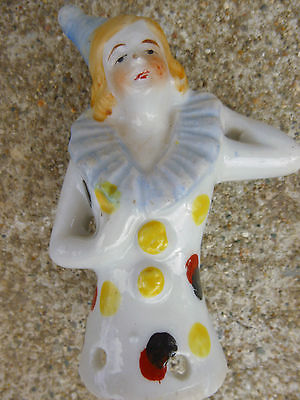 UNUSUAL Vintage Porcelain pincushion half doll Circus Woman performer with hat