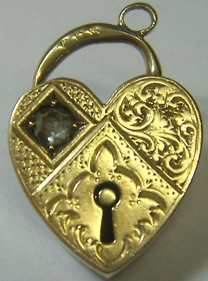 Title (ebay affiliate link): Rare Antique 15ct / 15k Gold Diamond Set Padlock Charm / Clasp c Birmingham 1901