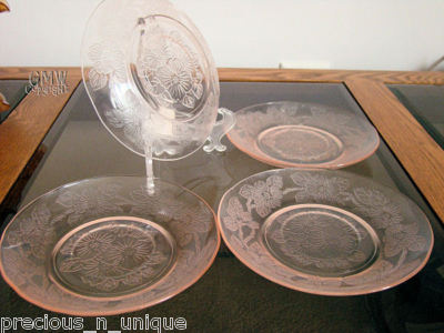 4 PINK DEPRESSION DOGWOOD SAUCERS MacBETH-EVANS
