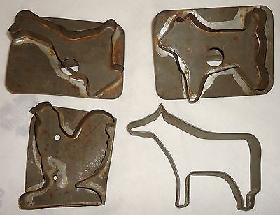 Antique TIN COOKIE CUTTER / GOOSE / CHICKEN ROOSTER / DOG/ COW / FLAT BACK/4pcs