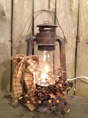 Title (ebay affiliate link): Railroad Lantern Electric, with berries and bow