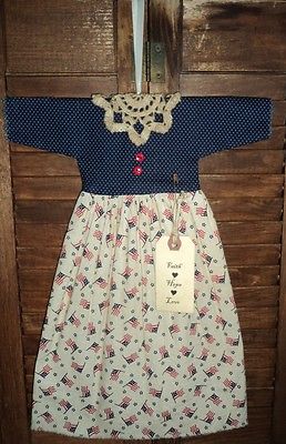 Title (ebay affiliate link): GRUNGY~PRIMITIVE WALL~CUPBOARD~DOLL DRESS AMERICANA BLUE DOT FLAG FOLK ART DECOR