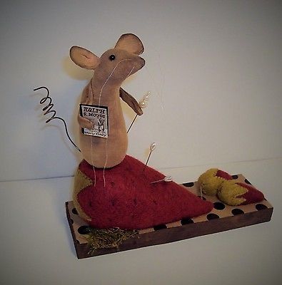 Title (ebay affiliate link): primitive handmade mouse ornie doll wool strawberry pincushion mice book pins