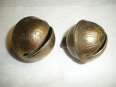 Two Antique/Primitive 1800's Brass Graduated Petal Style Horse Sleigh Bells