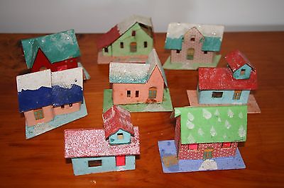 Title (ebay affiliate link): Vintage Lot 8 Cardboard Christmas Houses Village Putz? No Markings.