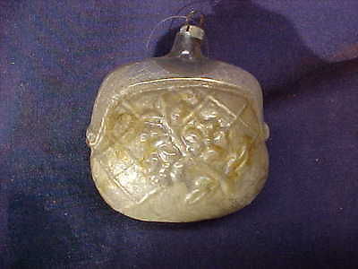 Early 20thc PURSE w EMBOSSED FLOWERS Figural Glass CHRISTMAS ORNAMENT