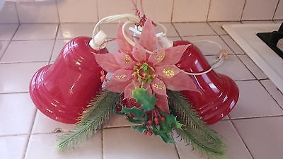 Set of Vintage Red Bell Hard Plastic Christmas Tree Lights with Ornamentation