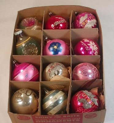 Title (ebay affiliate link): ANTIQUE EARLY 12 SHINY BRITE FROSTED & INDENT GLASS CHRISTMAS TREE ORNAMENTS