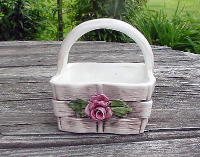 GORGEOUS CAPODIMONTE BASKET WITH HANDLE -MADE IN ITALY-MARKED WITH AN "N"