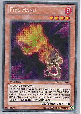 Title (ebay affiliate link): Yu-Gi-Oh Fire Hand Secret Rare 1st ed. DRLG-EN046