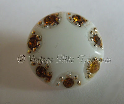 Gorgeous Antique Vintage Milk Glass Button Amber Rhinestones Gold Luster