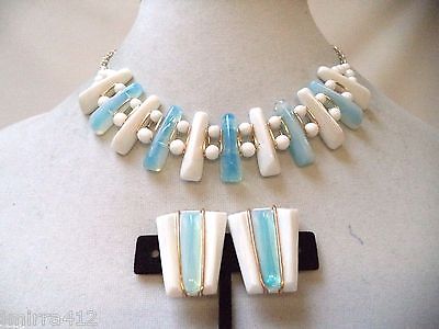 Title (ebay affiliate link): GORGEOUS VINTAGE SIGNED W GERMANY MILK GLASS BEADED EARRINGS NECKLACE!!! 2028M